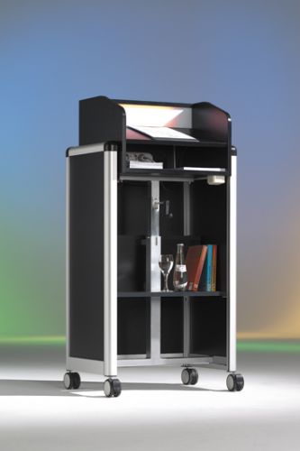 aus formschönen massiven Aluviertelkreisprofilen, verleiht diesem Rednerpult