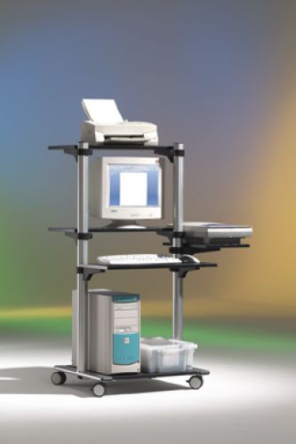 Die EDV-Workstation ist serienmäßig ausgestattet mit 4 verstellbaren Stellflächen,