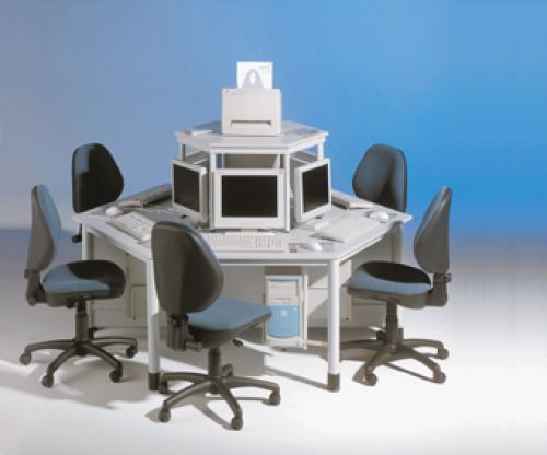 Auf der zweiten Ebene lassen sich bequem und zentral von jedem Arbeitsplatz leicht zugänglich weitere Geräte, wie Drucker, Scanner usw. unterbringen.