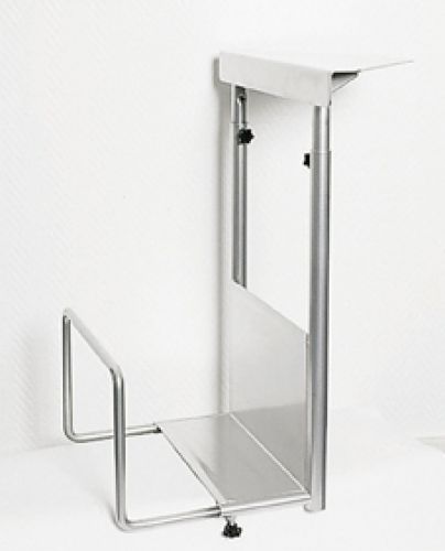 ComputerhalterungEinzeln zur nachträglichen Aufrüstung vorhandener Tische, passend für Computer bis 25 cm Breite,höhenverstellbar von 45 – 50 cm, einfachste Montage und hohe Stabilität durch großflächige Montageplatte.
