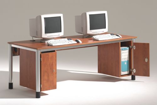 Computer-Holzunterbau rechtsAbschließbare Computer-Holzunterbauten zur staubfreien und sicheren Unterbringung Ihres Computers. Lüftungsschlitze in Tür und Rückwand verhindern eine Überhitzung der Geräte.