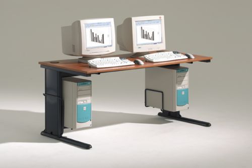 Computerhalterung rechtsRechts am Tisch befestigt, passend für einen Computer bis 50 cm Höhe und 25 cm Breite.
