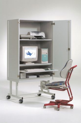 Über dem Monitorfach ein Tastaturauszug und ein verstellbarer Einlegeboden.