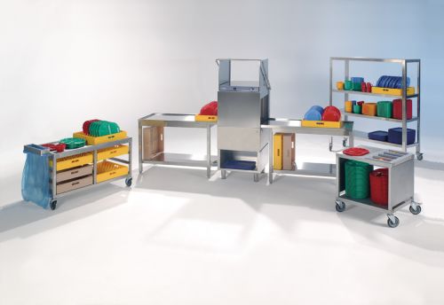befinden sich Abstellmöglichkeiten für weitere Spülkörbe.