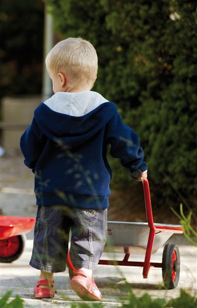 Alter 2-4 Jahre, extra verstärkte Ladefläche,Wannenhöhe 30 cm, Länge 81 cm, Gew. 5,5 kg.Mit der standfesten Schubkarre können bereits kleine Kinder die unterschiedlichsten Ladungen kippsicher transportieren. Die zwei vorderen Räder und die extra verstärkten Abstellfüße sorgen für optimale Stabilität.