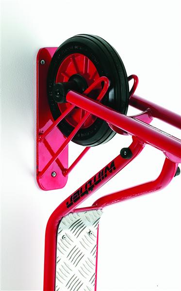 L 23 cm, B 8 cm, Halterungsbügel L 30 cm.Mit der Wandaufhängung für Winther Roller und Fahrräder wird Stellfläche eingespart. Das Vorderrad des Fahrzeugs wird ganz einfach in die Aufhängung gehängt, und schon sind alle Zweirad-Fahrzeuge aus dem Weg geräumt.
