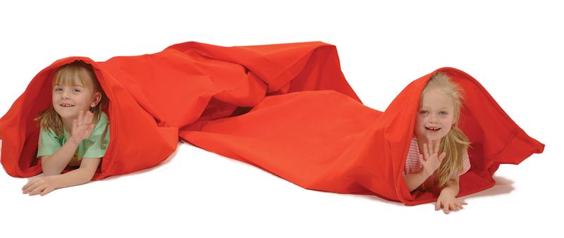 Einen ganz besonderen Kriech- und Krabbel-Spaß bietetder Tunnel aus Segeltuch. Vorwärts- und Durchkommen in dem langen Stoffschlauch ist herausfordernd und regt zu fantasievollen, kreativen Spielideen an. Robuster Dralonstoff in orange mit verstärktem Rand, 4 Meter lang, Größe der Öffnungen ca. 65 cm. Für das Gruppenspiel im Innenbereich.