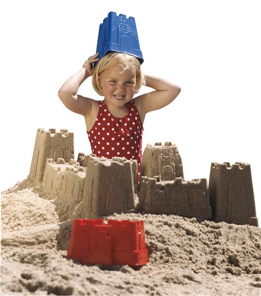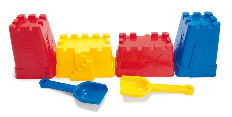 Extra große Sandformen, um richtig große Sandburgen zu bauen. 2 Türme, 2 Mauern, 2 Schaufeln.Turm: L x B 14,7cm, H 19,5cm Mauer: L 21 cm B14,2cm, H 12cm Schaufel: L 24cm, B 8,5cm, H 3,2cmGesamtgewicht: 687g.