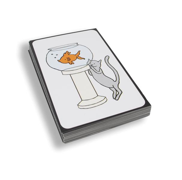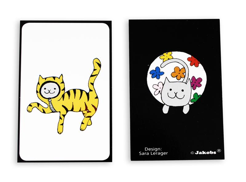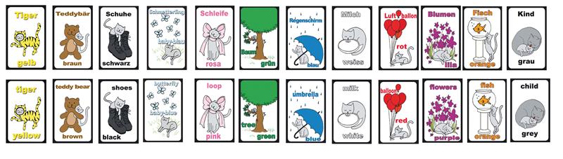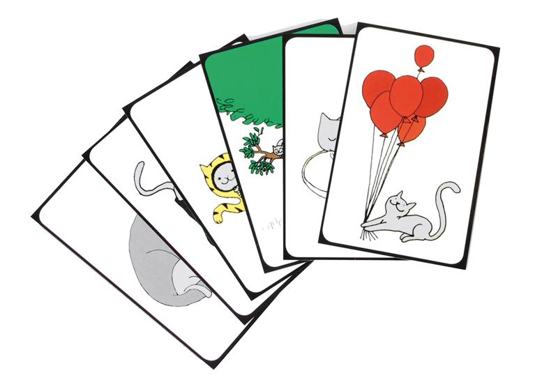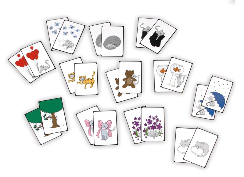 Die Kartengröße des Gedächtnis-Spiels Tint’o Cat passt genau in unseren ergonomisch geformten Kartenhalter ErgoPic. 12 Kartenpaare, auf denen eine kleine, graue Katze ihre Welt mit bekannten Alltagsgegenständen und ihre Umgebungen erlebt. Mit jeder Bild-Aussage definiert ein Kartenpaar eine bestimmte Farbe: z.B. Regenschirm – blau oder Teddybär – braun. So wird neben dem Gedächtnistraining und Konzentrationstraining ganz unbewusst Farbenerkennung und Farbenzuordnung vermittelt. Zusätzlich können die dargestellten Situationen auch sehr gut zur Sprachförderung eingesetzt werden. 24 Spielkarten 12 Kartenpaare) aus stabilem, beschichteten Karton, Kartengröße 98 x 63 mm. Für 2 bis 4 Spieler, ab 3 Jahren.