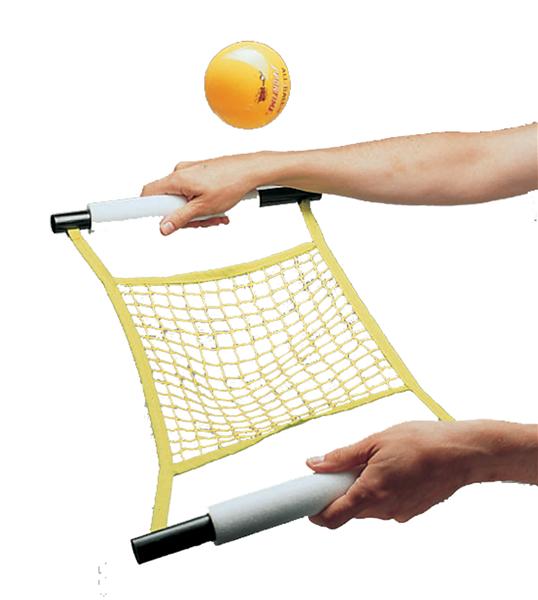 Interessantes Ball-Fang-Spiel, das ähnlich wie Volleyball oder Badminton als Mannschaftsspiel - auch ohne großes Netz - gespielt werden kann. Natürlich lassen sich auch bereits vorhandene Bälle verwenden. Sehr gut geeignet, um Ball- und Spielgefühl zu entwickeln.Spiel-Set mit 2 Mono-Fling Netzen und 2 Spielbällen (All Balls), 7,6 cm Gewicht 340 g. Netzgröße 30,5 x 25 cm, Gesamtgröße einschließlich ummantelter Griffe 53 cm x 25 cm. Einzel- oder Gruppenspiel, im Innen- und Außenbereich.Die vielseitigen, kleinen Bälle zum Aufpumpen mit sehr angenehmer Oberfläche können für die unterschiedlichsten Aktivitäten benutzt werden: zum Jonglieren, für Rollbrett-Paddel-Aktivitäten, für Flingit und BoundaLoons, zur Handgymnastik und vieles mehr. Größe, Sprungkraft und Widerstand lassen sich mit dem Standard-Ventil einstellen. Durchmesser 7,6 cm, Gew. 40 g, lieferbar im 3er- und 6er-Set.