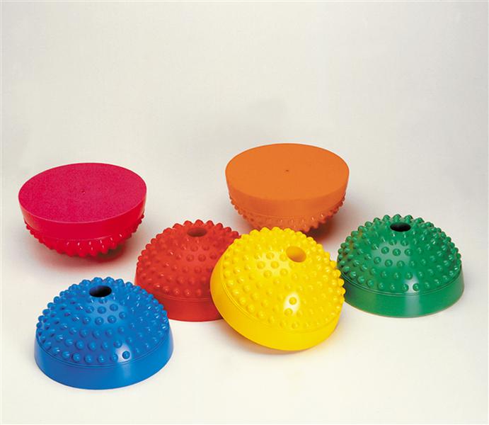 16 cm 8 cm hoch, 6er Set, farbl. sortiert, Polybag.Die Halbkugeln mit der noppigen Oberfläche haften gut auf glattem Untergrund, sie können mit Wasser oder Sand zusätzlich beschwert werden, in die obere Öffnung passen gängige Rundstäbe. Für den Spiel- und Therapiebereich.
