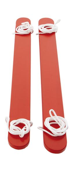 Die Ski sind aus farbig lackiertem Holz mit rutschfestem Gummibelag, der den Boden vor Kratzern schützt, 88 cm lang mit Haltekordeln. Für 2 Kinder ab 3 Jahren, für drinnen und draußen. Es sieht so leicht aus, aber es erfordert die Koordinierung der Bewegungen von zwei Kindern, um sich im Gleichschritt fortzubewegen.