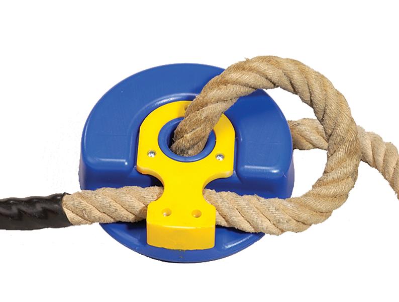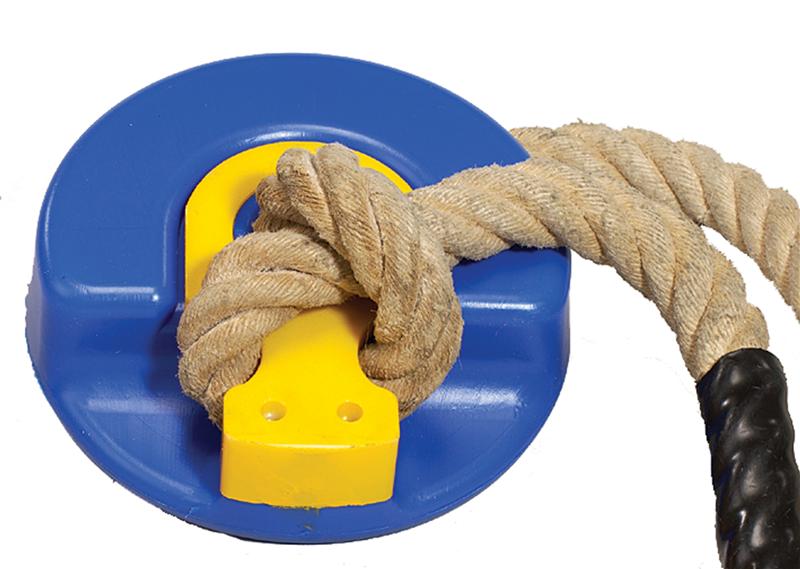 DE-Patent Nr.: 10257307.7) US-Patent No.: 6,874,851) Mit den Tauen in Sport- und Turnhallen gefahrlos undverletzungssicher schaukeln und schwingen - das ist mit dem SwingTop auf professionelle Weise wieder möglich! Der leichte Auf- und Abbau, die zum Sitzen oder Stehen optimale Größe und das stabile, hochwertige Material erlauben vielfältige Sport- und Spielmöglichkeiten zum Schaukeln, Schwingen und Drehen mit den Tauen. Für alle Klassenstufen, Altersstufen und Gewichtsklassen.Stabiler Kunststoffteller, 22 cm 7 cm hoch, aus einem Guss hergestellter blauer Hohlkörper mit andersfarbiger Einsatzschablone, Gewicht 400 g. Die Öffnung in der Mitte passt für alle genormten Schultaue: einfach das Tauende durch die Öffnung nach unten führen, durch die gelbe Lasche und dann durch die so entstandene Tauschlinge ziehen. Fertig ist der Schaukelsitz! Durch das Gewicht beim Sitzen oder Stehen auf dem SwingTop zieht sich die Schlinge automatisch fest und bleibt auch während der Benutzung sicher zusammengeknotet. Trotzdem läßt sich der SwingTop bei Nichtbedarf problemlos abbauen. Mehrere SwingTops können übereinander gelegt oder auf einen Turnstabgesteckt platzsparend gelagert werden. Geschmeidige Klettertaue in Turnhallenqualität aus Langhanf 30 mm oben mit einem stabilen Seilhalter zum Einhängen, unten mit Kunststoffüberzug. Für die Montage mit unserem Schaukelteller SwingTop können die Taue in 3 verschiedenen Längen bestellt werden, für die Nutzlänge bitte immer 50 cm für die Einarbeitung des SwingTops abziehen. Auf Wunsch kann am Seilhalter ein Schäkel eingehängt werden zur Vergrößerung der Aufhängeöse).