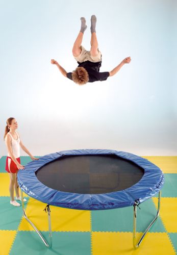 TROUT 305 | Trampolin Luftikusmit Federn und verstärkter Sicherheits-Randabdeckung.Belastbarkeit bis 100 kg.Sprungmatte ist aus UV- und wetterbeständigem Polypropylen gewebt.Durchmesser: 300 cm