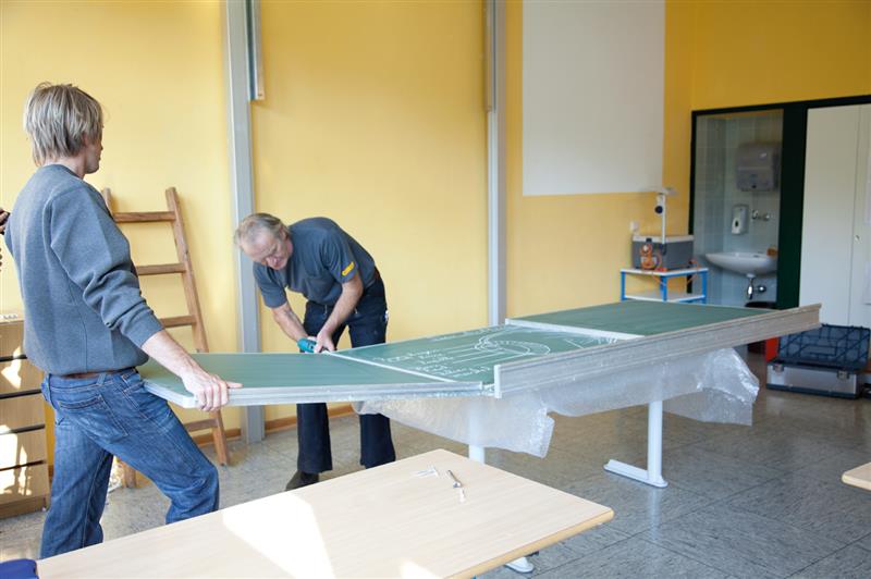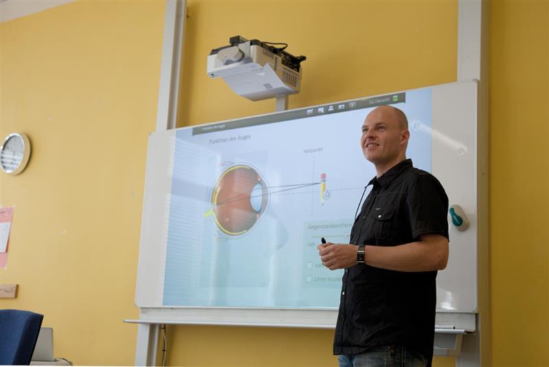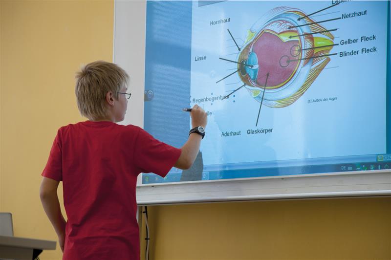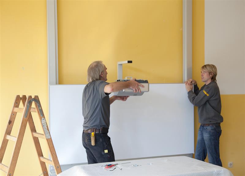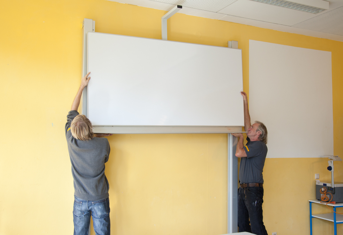 Das Paket beinhaltet: Whiteboardfolie beschreibbar mit Whiteboardmarkern und trocken abwischbar, Projektorhalterungssystem, Projektor, interaktive Kameratechnologie bedienbar mit elektronischem Stift, Software, Gewichtsausgleich, Kabel, Whiteboardzubehör. Preis für das erste Paket für die Umrüstung einer Tafel an einer Schule