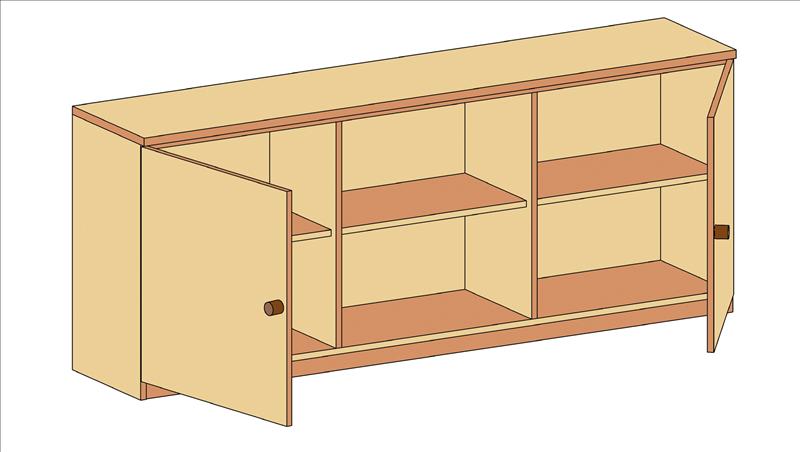 Außenmaße (cm): 200B x 82,5H x 50T Anrichte 2 Türen, abschließbar, offenes Mittelteil, 3 x 1 Einlegeboden