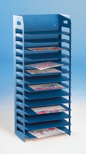 Trockengestell aus PappeGanz schnell aufgebaut und sehr günstig.14 Ablagen für Papierbögen bis A3-Format.Farbe: DunkelblauMaße, L/B/H: 34 x 46 x 112 cm