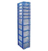 Modulbox H5F5, 5 hohe, 5 flache Kunststoffschübe Beschreibung: Jede Modulbox besteht aus einem flachen oder hohen transparenten Kunststoff-Schub und einem dazu passenden ozeanblauen Kunststoff-Rack. Durch die Transparenz ist der Inhalt in den Schüben sofort erkennbar. Grundsätzlich sind diese Materialcontainer fahrbar und mit flachen oder hohen Modulboxen ausgestattet. Durch Umstecken einzelner Modulboxen – z.B. Mischen von flachen und hohen Modulboxen – entstehen andere Kombinationen und damit ganz spezielle Ordnungssysteme.