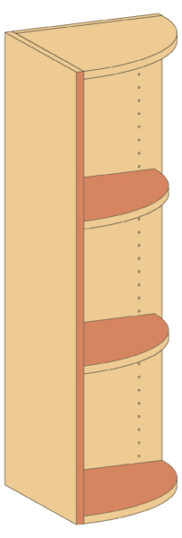 Außenmaße (cm): 50B x 110H x 50T Aufsatz-Eckschrank offen, 2 feste Fachböden, abgerundet