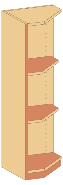 Außenmaße (cm): 50B x 120H x 50T Unter-Eckschrank offen, 2 feste Fachböden, abgeschrägt