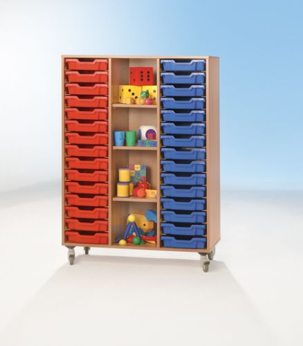 SymBox Eigentumsschrank• Maße, B/H/T: 103,5 x 145 (150F) x 50 cm• Boxensystem: SymBox• Anzahl Schübe: 30 x SymBox „flat“• 3 Einlegeböden im Mittelteil• Farbe der Schübe wie abgebildet• 4 Rollen, 2 davon feststellbar
