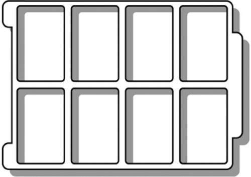 S 1 PE8 Einsatz mit 8 FächernPaletten-Einsätze passend nur für SymBoxen „flat“, schaffen noch mehr Ordnung.Aus hellgrauem Polystyrol gefertigt vervollständigen sie das übersichtlicheAufbewahrungssystem. In 3 unterschiedlichen Grundformen lieferbar.