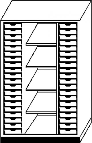 • mit je 20 kleinen Schüben links und rechts vom Regalteil