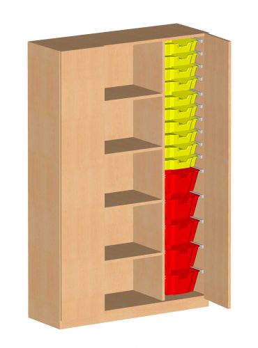 Hochschrank, mit schmalen Türen und offenem Regalteil