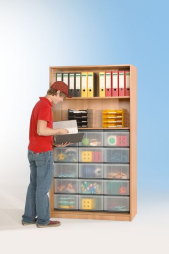 • Schrank als offenes Regal• Maße, B/H/T: 101 x 190 x 50 cm• Boxensystem: InBox• Anzahl Schübe: 15 x InBox „L“• 2 Einlegeböden, davon 1 verstellbar• Farben der Schübe wie abgebildet
