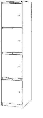 1 Element mit 4 geschlossenen Fächern, links angeschlagen (Schloss rechts).