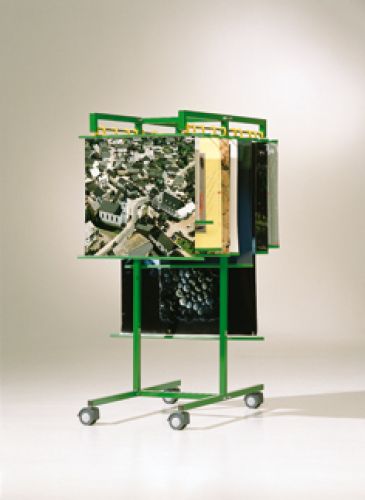 Bilderleisten (Ober- und Unterleisten, sowie Haken). Gestell aus Profilrohr, einbrennlackiert,