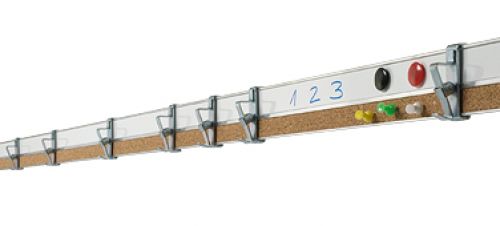 von AK2 und AK4 in einer Leiste. Pinnadeln, Kraftmagnete, White-Tafelmarker und Rollhaken mit integriertem