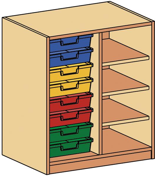Außenmaße (cm): 70,2B x 80H x 50T Unterschrank mit 8 flachen Kunststoffschüben und 3 Einlegeböden