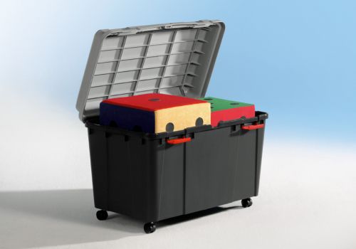 Aufbewahrungsboxmit Deckel und Rollen, stapelbar, Farbe wie abgebildetMaße, B/H/T: 77 x 44 x 37 cm • Volumen: ca. 120 Liter