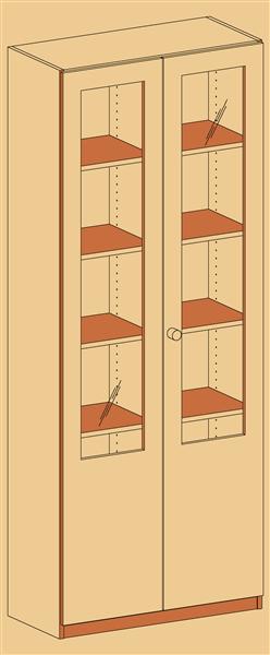 Außenmaße (cm): 100B x 230H x 50T Schrank 2 Türen mit 2/3-Glasausschnitt, abschließbar, Mittelwand, 2 x 5 Einlegeböden