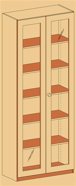 Außenmaße (cm): 100B x 230H x 50T Schrank 2 Türen mit 3/3-Glasausschnitt, abschließbar, 5 Einlegeböden