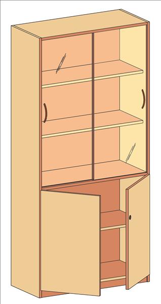 Außenmaße (cm): 90B x 190H x 40T Schrank oben: 2 Glasschiebetüren, 2 Einlegeböden, unten: 2 Türen, 1 Einlegeboden