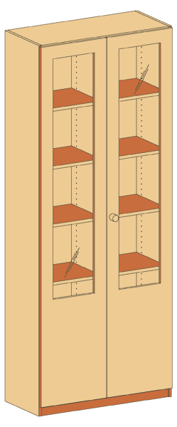 Außenmaße (cm): 95B x 230H x 50T Schrank 2 Türen mit 2/3-Glasausschnitt, abschließbar, Mittelwand, 2 x 5 Einlegeböden