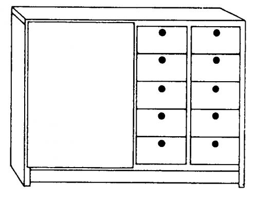 mit abschließbarem Fach links und 2 verstellbaren Böden,