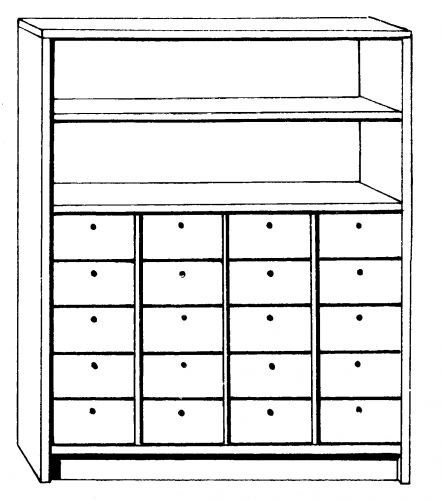 mit Regalaufsatzteil, ohne Türen, Unterschrank mit 20 Holzkästen HK 5