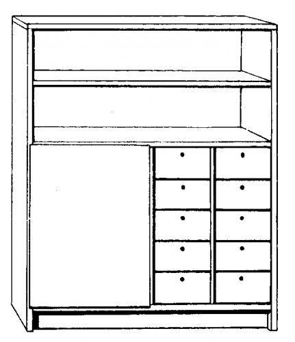 mit Regalaufsatzteil, ohne Türen, im Unterschrank ein abschließbares Fach