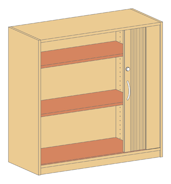 Außenmaße (cm): 90B x 98H x 40T Unterschrank mit horizontal laufender Jalousie, abschließbar, 2 Einlegeböden