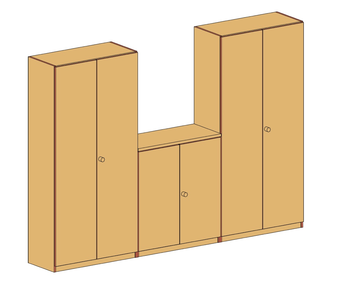 1 x Schrank 2 Türen abschließbar, mit Mittelwand und 2x4 Einlegeböden, Maße B/H/T 90x190x40 cm,