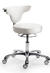 Die um 360° drehbare Rückenlehne schafft volle Flexibilität! 1252 Multifunktions-Rollhocker Sitz und Rücken gepolstert, Bezug PU Kunstleder weiß 118, Rückenlehne/Armauflage 360° drehbar, stufenlose Höhenverstellung durch Sicherheitslift, Ringauslöser, Alu-Fußkreuz hochglanz poliert, inkl. Rollen für Hartbödennur wie Abb. lieferbar !