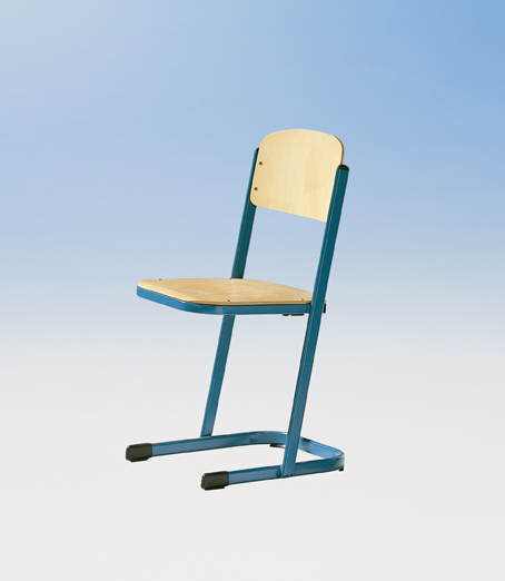 Schülerstuhl Modellreihe ST 40 Diese Stühle sind stapelbar und haben einen serienmäßigen Aufstuhlungsschutz an den Unterseiten. Das Gestell ist pulverbeschichtet und aus stabilem Oval-Stahlrohr. Mit Rohrabschluss und überlappenden Trittschutzkappen aus ABS-Kunststoff. Die Sitzflächen sind aus hochwertigem, mehrschichtverleimten Buchen-Sperrholz gefertigt. Auf Wunsch mit robusten Filzgleitern erhältlich. Schülerstuhl mit geschlossenem Sitzträger
