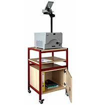 Projektorwagen mit Unterschrank abschließbarer Tür sowie mit 4 Aktionsebenen für Arbeiten im Stehen (auf der oberen Platte) oder im Sitzen (auf der unteren Platte). Beide Platten werden mitgeliefert. Die Platten können herausgenommen werden, wobei die obere Platte auf die 3. Ebene und die untere Platte auf die 4. Ebene gelegt werden kann. Vier Rollen (zwei davon feststellbar) gewährleisten einen leichten Transport. Außenmaße(cm): 54B x 84H x 44T Standard-Dekor: U 016-lichtgrau Standard-Gestellfarbe: RAL 7035-lichtgrau