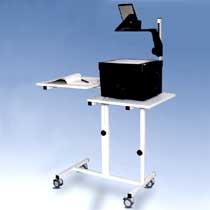 Stabiler Projektorwagen mit 2 Aktionsebenen von denen eine Arbeitsplatte in der Höhe fixiert ist. Die zweite Platte kann in der Höhe von 60 - 90 cm verstellt werden. Vier Rollen (zwei davon feststellbar) gewährleisten einen leichten Transport. Außenmaße(cm): 100B x 90H x 50T Standard-Dekor: U 016-lichtgrau Standard-Gestellfarbe: RAL 7035-lichtgrau