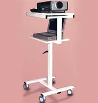 Stufenlos höhenverstellbarer Projektorwagen. Die Höhenverstellung von 100 bis 140 cm erfolgt mittels Klemmschraube. Die stabile Hubsäule mit Ablageplatte (43 B x 40 T) steht nicht mittig auf dem fahrbaren Untergestell. Der Neigungswinkel der Projektorplatte kann mit der Regulierschraube fein eingestellt werden. Leichter Transport wird garantiert durch 4 leicht laufende Doppelrollen (2 davon feststellbar). Standard-Dekor: U 016-lichtgrau Standard-Gestellfarbe: RAL 7035-lichtgrau Außenmaße(cm): 50B x 48T, Höhe von 100-140cm Obere Platte: 50B x 36T