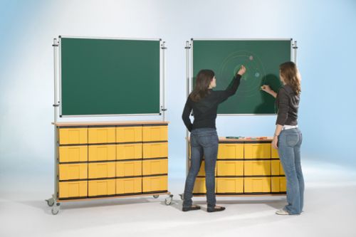 Jedes BoxTafel besteht aus Tafel, fahrbarem Gestell und den entsprechend farbigen Boxen und wird gebrauchsfertig montiert geliefert!