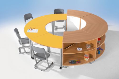 Sowohl die Tische als auch die Schränke basieren auf einem 1/8 Kreis,